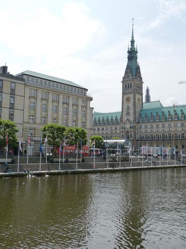 Keywords: hamburg hanseatic city architecture landmark historically town hall building tower facade town hall tower alster promenade