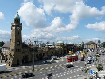 Keywords: hamburg hanseatic city germany architecture building landmark historically tourist attraction landungsbrücken port traffic