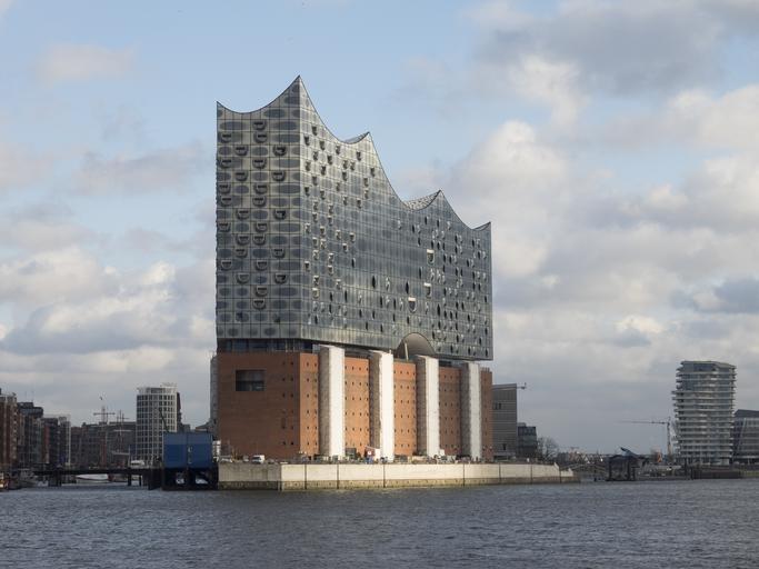 Keywords: hamburg landmark elbe philharmonic hall hanseatic city germany port harbour city tourist attraction places of interest modern architecture building window hotel