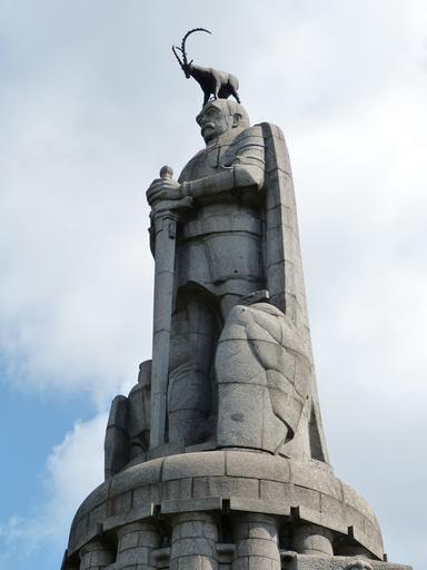 Keywords: hamburg monument sculpture historically statue bismarck chancellor policy capricorn sword still image