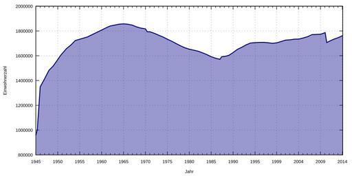 | Keywords: Hamburg population2.svg en Hamburg population statistics since 1945 de Einwohnerentwicklung von Hamburg seit 1945 own ; data from de Einwohnerentwicklung_von_Hamburg Gorgo 2011-03-06 Gnuplot script to generate this plot gnuplot <source lang gnuplot > /usr/bin/gnuplot gnuplot 4 2 / Ubuntu 8 10 input set timefmt d m Y set datafile separator ; output unset key set style data lines set style fill transparent solid 0 4 set grid set xdata time set xlabel 'Jahr' set xrange '01 01 1945' '31 12 2009' set xtics 157680000 set mxtics 5 set format x ' Y' set ylabel 'Einwohnerzahl' set ytics 200000 set format y ' 0f' set yrange 800000 set term svg size 800 400 font Arial 10 set output 'hamburg_population2 svg' plot '-' using 1 2 with filledcurves below x1 lt rgb 'dark-blue' lw 2 30 06 950;500 30 06 1050;900 30 06 1200;1500 30 06 1300;5000 30 06 1430;16000 30 06 1560;20000 30 06 1600;40000 30 06 1650;60000 30 06 1750;75000 30 06 1787;100000 30 06 1800;130000 30 06 1811;106983 30 06 1814;55000 30 06 1826;122861 03 12 1834;130385 03 12 1837;135375 03 12 1840;136956 03 12 1846;148754 03 12 1852;161390 03 12 1855;166148 03 12 1858;171696 03 12 1861;178841 03 12 1864;175700 03 12 1867;225074 01 12 1871;240251 01 12 1875;264675 01 12 1880;289859 01 12 1885;305690 01 12 1890;323923 02 12 1895;625552 01 12 1900;705738 31 12 1901;725971 31 12 1902;739747 31 12 1903;754261 31 12 1904;776354 01 12 1905;802793 31 12 1906;830578 31 12 1907;856226 31 12 1908;881874 31 12 1909;907522 01 12 1910;931035 31 12 1911;946236 31 12 1912;1000903 31 12 1913;1031480 01 12 1916;876833 05 12 1917;846055 08 10 1919;985779 31 12 1919;1004427 31 12 1920;1026989 31 12 1921;1041057 31 12 1922;1071924 31 12 1923;1066991 31 12 1924;1089091 16 06 1925;1079126 31 12 1925;1087049 31 12 1926;1101132 31 12 1927;1115511 31 12 1928;1131599 31 12 1929;1145014 31 12 1930;1145124 31 12 1931;1135317 31 12 1932;1123500 16 06 1933;1129307 31 12 1933;1127917 31 12 1934;1112195 31 12 1935;1101105 31 12 1936;1096796 31 12 1937;1094715 31 12 1938;1689100 17 05 1939;1711877 31 12 1940;1725500 31 12 1944;958247 01 05 1945;1004325 31 12 1945;1350278 29 10 1946;1403300 31 12 1947;1482639 31 12 1948;1518900 13 09 1950;1605606 31 12 1951;1658038 31 12 1952;1687190 31 12 1953;1722819 25 09 1956;1751289 06 06 1961;1832346 31 12 1961;1840543 31 12 1962;1847523 31 12 1963;1854637 31 12 1964;1857431 31 12 1965;1854361 31 12 1966;1847267 31 12 1967;1832560 31 12 1968;1822837 31 12 1969;1817122 27 05 1970;1793823 31 12 1970;1793640 31 12 1971;1781621 31 12 1972;1766214 31 12 1973;1751621 31 12 1974;1733802 31 12 1975;1717383 31 12 1976;1698615 31 12 1977;1680340 31 12 1978;1664305 31 12 1979;1653043 31 12 1980;1645095 31 12 1981;1637132 31 12 1982;1623848 31 12 1983;1609531 31 12 1984;1592447 31 12 1985;1579884 31 12 1986;1571267 25 05 1987;1592770 31 12 1987;1594190 31 12 1988;1603070 31 12 1989;1626220 31 12 1990;1652363 31 12 1991;1668757 31 12 1992;1688785 31 12 1993;1702887 31 12 1994;1705872 31 12 1995;1707901 31 12 1996;1707986 31 12 1997;1704731 31 12 1998;1700089 31 12 1999;1704735 31 12 2000;1715392 31 12 2001;1726363 31 12 2002;1728806 31 12 2003;1734083 31 12 2004;1734830 31 12 2005;1743627 31 12 2006;1754182 31 12 2007;1770629 31 12 2008;1772100 31 12 2009;1774224 e </source> Cc-zero Temporal population graphs of Hamburg Hamburg History of Hamburg Images with Gnuplot source code |