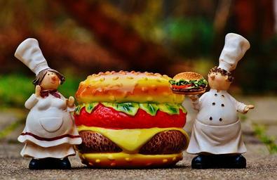 Keywords: hamburger cheeseburger cooking funny food preparation chef's hat fig sweet figures cook order call delicious eat cute