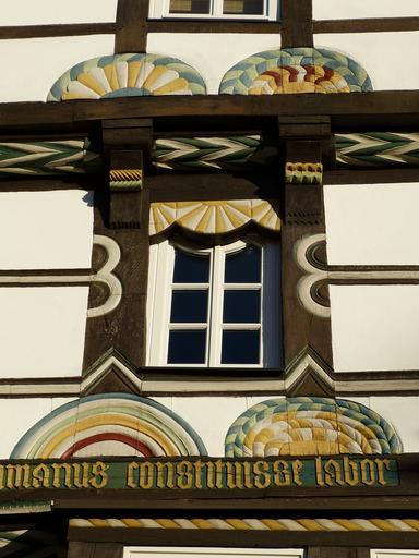 Keywords: hamelin building window truss fachwerkhaus hauswand wall bar pattern colorful wood