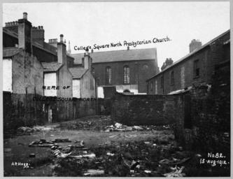 | Keywords: proni hogg alexander r. hogg alexanderrhogg belfast belfast corporation belfastcorporation regeneration ulster housing northern ireland northernireland blackandwhite monochrome outdoor building architecture black and white Creator: Alexander R. Hogg for Belfast Corporation Date: 15th August 1912 Description: Hamill Street Area: Rere of houses south side Galway Street right to left No.s 235 to 238 on plan. Streets in photo: Galway Street, College Square North, Hamill Street. Premises in photo: College Square North Presbyterian Church. PRONI Ref: LA/7/8/HF/3/82 Copying and copyright: Please see www.proni.gov.uk/index/research_and_records_held/copying_... For Copy Orders, contact: Email: proni@dcalni.gov.uk For fees and charges see: www.proni.gov.uk/index/about_proni/are_there_any_fees_and... Creator: Alexander R. Hogg for Belfast Corporation Date: 15th August 1912 Description: Hamill Street Area: Rere of houses south side Galway Street right to left No.s 235 to 238 on plan. Streets in photo: Galway Street, College Square North, Hamill Street. Premises in photo: College Square North Presbyterian Church. PRONI Ref: LA/7/8/HF/3/82 Copying and copyright: Please see www.proni.gov.uk/index/research_and_records_held/copying_... For Copy Orders, contact: Email: proni@dcalni.gov.uk For fees and charges see: www.proni.gov.uk/index/about_proni/are_there_any_fees_and... |
