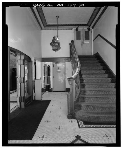 | Keywords: Hamilton Hotel - lobby from front - Portland Oregon.jpg OR-159-10 Lobby foyer and stairs viewed from front door Partial tile pattern in foreground is seen in greater detail in photo No OR-159-16 90mm Photo by John Stamets HABS PD-USGov-Interior-HABS Library of Congress 1993-03 Historic American Buildings Survey Original work of the US Federal Government - public domain PD-USGov Hamilton Hotel Building interiors in Oregon 1993 in Oregon Black and white photographs of Oregon | ||||