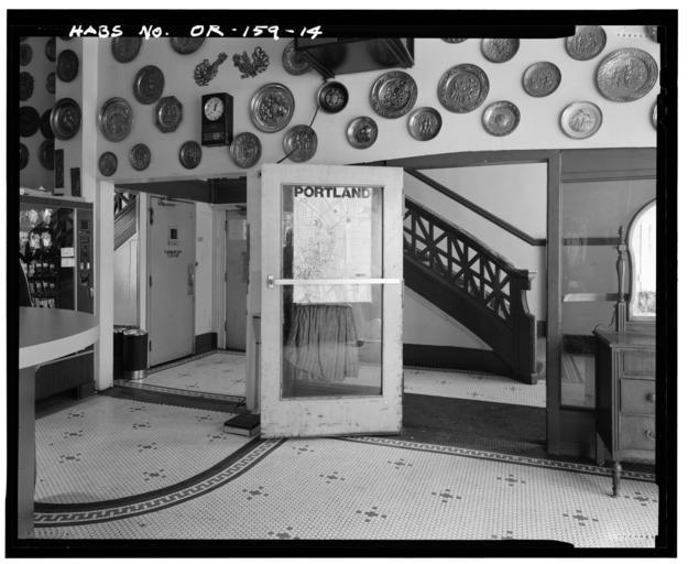 | Keywords: Hamilton Hotel - lobby to vestibule - Portland Oregon.jpg  OR-159-14 View from lobby looking south into vestibule 90mm Photo by John Stamets HABS PD-USGov-Interior-HABS Library of Congress 1993-03 Historic American Buildings Survey HABS PD-USGov Hamilton Hotel Building interiors in Oregon 1993 in Oregon Black and white photographs of Oregon |