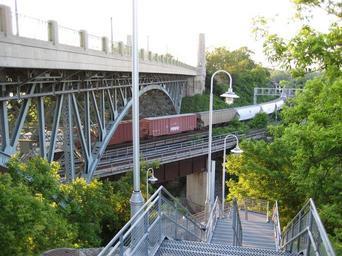 | Keywords: HamiltonWaterfrontTrailStairway.JPG York Boulevard high level bridge stairway Hamilton Ontario Stairs lead down to the Desjardins Canal Cootes Paradise + Waterfront Trail Canadian National Railway lines crosses underneath the high level bridge Own 2007-06 Nhl4hamilton Rick Cordeiro see free license below Waterfront Trail in Hamilton Railway bridges in Ontario June 2007 in Canada 2007 in Hamilton Ontario 2007 in transport in Canada Bridges in Hamilton Ontario Outside stairs in Hamilton Ontario |