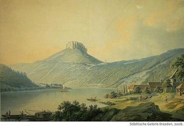 | Keywords: Hammer CG (G01)Lilienstein.jpg Bild-Beschreibung / description of picture 10 top right style background 87CEFF Titel / Title Lilienstein von der Elbe aus - valign top right style background 87CEFF Beschreibung / Description Ansicht des Liliensteines in der Sächsischen Schweiz von der Elbe aus Die Gebäude auf der linken Bildseite gehören zum Rittergut Prossen das der Maler aus bildkompositorischen Gründen näher an die Elbe gerückt hat;<br>Aquarell<br>View to the rock Lilienstein in Saxon Switzerland out from the Elbe-River;<br>watercolor top right style background 87CEFF Autor / Artist gezeichnet / painting Christian Gottlob Hammer 1779-1864 top right style background 87CEFF Quelle / Source http //www staedtische-galerie-dresden de/ Städtische Galerie Dresden Kunstsammlung Museen der Stadt Dresden; Inventar-Nummer 1946/187;<br>Foto Franz Zadnicek top right style background 87CEFF Datum / Date 1814 top right style background 87CEFF Lizenz / License PD-old Lilienstein Paintings from Germany Christian Gottlob Hammer |