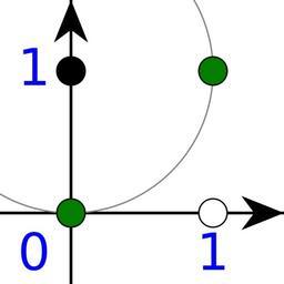 Keywords: Hamming sphere on plane for 01.svg en Hamming sphere on plane for point 0 1 and radius 1 own Vlsergey 2011-02-16 Cc-zero Coding theory
