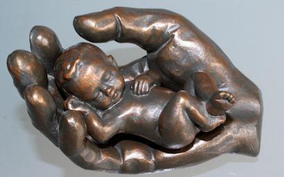 Keywords: hand child bronze statue security baby keep protection trust protected sleep open decoration