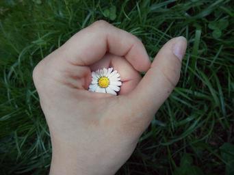 Keywords: hand flower daisy secret yellow white grass fingernail green spring