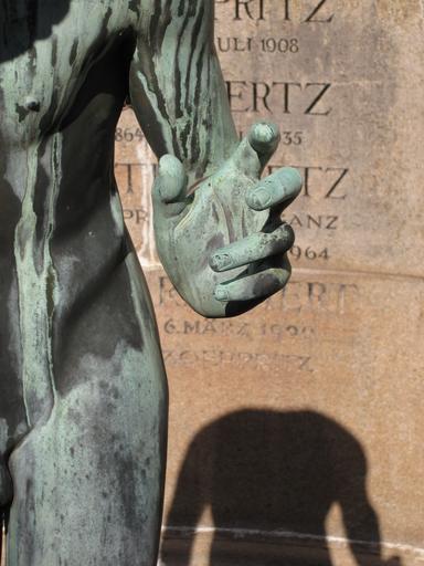 Keywords: hand naked finger gesture art human detention access contour open statue headless shadow shadow play commemorate cemetery monument act letting go body mirage timeless touching sculpture metal expression mourning