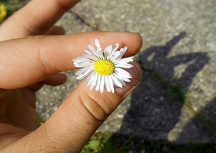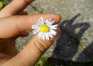 Keywords: hand shadow daisy gift green white yellow bright flower macro grass spring garden nature natural plant