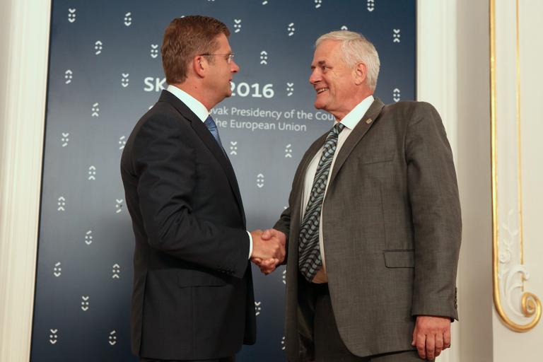 Photo: Andrej Klizan europe eu council handshake slovakia bratislava ec presidency reduta pressk eu2016sk HAND SHAKE 2016-07-12 (28262604005).jpg Slovakia Mr Peter Ziga Minister of Economy L Switzerland Mr Walter Steinmann Director Swiss Federal Office of Energy R Informal Meeting of Energy Ministers Photo Andrej Klizan https //www flickr com/photos/142675453 N02/28262604005/ HAND SHAKE 2016-07-12 2016-07-12 13 39 https //www flickr com/people/142675453 N02 EU2016 SK cc-zero eu2016sk https //flickr com/photos/142675453 N02/28262604005 2016-09-20 17 19 13 cc-zero Politicians of Europe Slovak Presidency of the Council of the European Union 2016 |