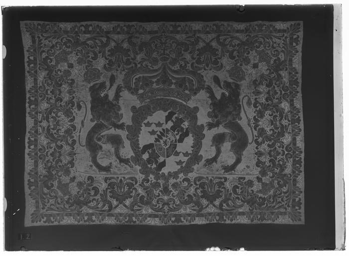 | Keywords: Handhästtäcke, svenska riksvapnet. Tillhört Karl XI (1655-1697). Beställda i Frankrike - Livrustkammaren - 640-negative.tif Rektangulärt täcke av blått kläde med applikationsbroderi i flera färger samma typ somnr 4046 Sytt av två stycken b 690 mm och 1060 mm Juelichs lejon av brun yllekypert medullgarnsbroderier i vitt och gult Stora kronan har reliefbroderier i flera färger original caption - 1671 1683 broadcloth Färg blå material kläde size mm 2495 1750 LRK Karl XI av Sverige place of origin original filename LN_B03520_006400 40652 inventory number LRK 4047 640 CC0 Handhästtäcke svenska riksvapnet Tillhört Karl XI 1655-1697 Beställda i Frankrike - Livrustkammaren - 640 tif |