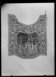 | Keywords: Handhästtäcke till handhäst ur Ludvig XIVs gåva till Karl XI 1673, den s.k. franska gåvan - Livrustkammaren - 77689.tif Av samma typ som nr 4036 Frans b 55-60 mm med stad av guld silver och vitt linne den drejade fransen är av guld- och silvertråd Vänster framstycke samt översta delen av anslutande parti av inskärningen framtill kantas av en frans av samma typ i denna frans ingår dessutom vita linnesnodder fransen l 250 mm Kåpa för sadelknappen l 215 mm placerad nedanför inskärningen Lejonens ögon markerade med knappar <br/><br/>På baksidans högra framstycke nära framkanten sitter en läderrem 200x18 mm Remmen sitter nära täckets högra långsida Ytterligare en rem har suttit nära inskärningen framtill Innanför samma styckes framkant sitter också två tränsar av linne ca 65x18 mm På vänster framstycke omedelbart innanför framkanten sitter nära täckets långsida en träns av brunt läder 50x25 mm med ett spänne av vitmetall 23x30 mm Rester av en likadan träns sitter på styckets andra hörn nära inskärningen Ca 50 mm nedanför inskärningen sitter sex tränsar av vitt skinn 60x25 mm med ring av gulmetall d 25 mm original caption 1673 velvet - gold thread - silver thread size mm 1620 1520 LRK Karl XI av Sverige Ludvig XIV av Frankrike Sweden - A Royal Treasury 1988-1989 place of origin original filename LN_B03569_006449 40648 inventory number LRK 4043 77689 CC0 Handhästtäcke till handhäst ur Ludvig XIVs gåva till Karl XI 1673 den s k franska gåvan - Livrustkammaren - 77689-negative tif Horse equipment Horse tack images from Livrustkammaren Media contributed by LSH 2013-10 |