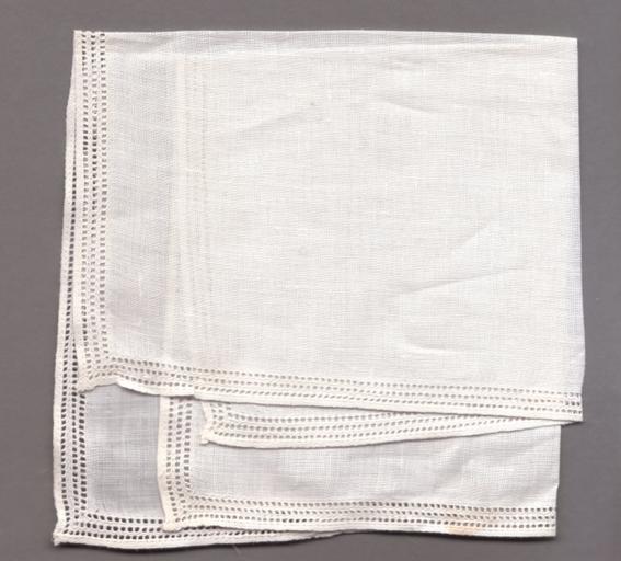 Keywords: Handkerchief.jpg Linen handkerchief decorated with hemstitching 2007-02-04 own assumed PKM Handkerchiefs Linen flax Drawn thread work Batiste