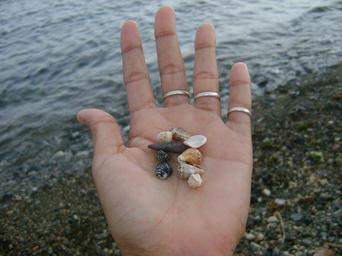 Keywords: hands snails sea small sand