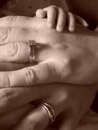 Keywords: hands trio three people adult young holding child female male expression humanity