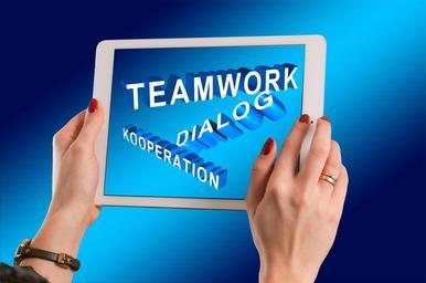 Keywords: hands woman keep ipad dialogue cooperation teamwork team cooperate koorparativ human group of people together group work community business