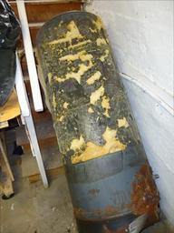 | Keywords: Handyman project to disassemble hot water heater 21.JPG en The inner tank becomes visible after the exterior metal cylinder and much insulation has been removed The tank is lighter slimmer but is still too heavy to lift out of the basement; perhaps it weighs 200 pounds but it is possible to lift one end at a time or else roll it cylindrically or else walk it in an upright position like moving a clumsy dance partner So it continues on its journey to the city dump Photo from a project to remove a bulky heavy non-needed 75 gallon hot water heater from a basement 2013-02-25 22 01 49 own Tomwsulcer cc-zero Uploaded with UploadWizard Water heating devices Handyman photos by tom sulcer Basements |