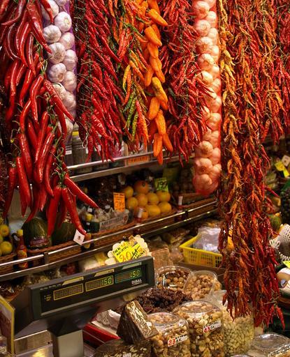 Keywords: hanging chili pepper ropes strings bunch red store spicy fresh garlic seasoning ingredient