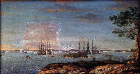 | Keywords: Hangö udde, Ö 3926.tif Artwork Creator Johan Tietrich Schoultz sv Affaire vid Hangö Udd emellan Svenska och Ryska armerade Skärgårds-Fartyg den 16 e October 1788 1803 Oil on canvas Size mm 400 215 Institution Sjöhistoriska museet credit line place of creation Stockholm Text på ramen Affaire vid Hangö Udd emellan Svenska och Ryska armerade Skärgårds-Fartyg den 16 e October 1788 PD-old-auto 1896 Sjöhistoriska museet accession number Ö 3926 Sjöhistoriska museet Images from Sjöhistoriska museet Johan Tietrich Schoultz 19th-century paintings from Sweden Oil on canvas Ships of Sweden |