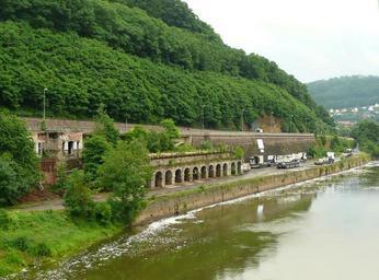 Keywords: Hann Münden Weserumschlag 08.jpg de Weserumschlagstelle Hann Münden own Axel Hindemith 2008-06 Weser in Hann Münden Transport in Hann Münden Hafen Hann Münden Hannöversche Südbahn