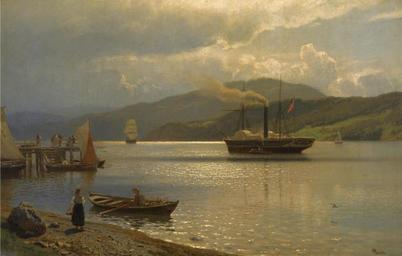 | Keywords: Hans Gude - Landskapet.jpg Artwork Creator Hans Gude oil canvas cm 39 5 61 5 object history Acquired by the grandfather of the present owners in Berlin at the turn of the century credit line HF Gude ~ lower right signature accession number http //www sothebys com/de/auctions/ecatalogue/2010/19th-century-european-paintings-including-german-austrian-and-central-european-paintings-the-orientalist-sale-spanish-painting-and-the-scandinavian-sale-l10101/lot 211 html Sotheby's London 2010 06 02 L10101 lot 211 PD-old-100 Paintings by Hans Gude Landscape paintings of Norway 19th-century landscape paintings Images from Sotheby's 19th-century paintings location missing 19th-century paintings of ships |