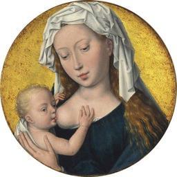 | Keywords: Hans Memling - The Virgin Mary nursing the Christ Child (after light cleaning 2014-15).png Artwork Creator Hans Memling mld A tondo depicting a graceful Virgin Mary nursing the Christ Child set before a gilded background ~ 1485 1494 oil gold oak panel size cm 17 4 Private collection accession number object history Ricardo Richard Traumann Collection Madrid Baron Laurent Meeus 1872-1950 Brussels with Agnew ™s London from whom purchased by Captain and Mrs Vivian Bulkeley-Johnson Churchill Oxon The Mount Trust 7 December 1950 Anonymous sale; Christie ™s London 1 December 1978 lot 111 Private collection Antwerp Anonymous sale Property from a Private Collection; Christie ™s New York 25 January 2012 lot 23 bought in with Christie's London offered for sale 9 December 2015 lot 11 withdrawn exhibition history Brussels Exposition d ™Art Ancien 1941-1942 no 23 Bruges Musée Communal Groeninge L ™Art Flamand dans les collections britanniques August-September 1956 no 12 Bruges Groeningemuseum Hans Memling Five Centuries of Fact and Fiction 12 August-15 November 1994 p 136 no 35 catalogue by D de Vos with contributions by D Marachal and W Le Loup Philadelphia Philadelphia Museum of Art on loan September 2007-August 2010 http //www philamuseum org/exhibitions/380 html Philadelphia Philadelphia Museum of Art Hans Memling ™s Virgin Nursing the Christ Child and the Early Netherlandish Tondo 19 December 2009-17 March 2010 fig 2 catalogue by L DeWitt Bruges Memlingmuseum 2013-2014 on loan http //www scuderiequirinale it/categorie/mostra-memling-e-l-italia Rome Scuderie del Quirinale Memling Rinascimento fammingo 11 October 2014-18 January 2015 no 18 catalogued by T-H Borchert credit line Virgin and Child in the Städelmuseum Fankfurt one of the three http //www staedelmuseum de/en/collection/flemalle-panels-ca-1428-30 Flémalle Panels painted circa 1428-30 by the Master of Flémalle thought to be Robert Campin There is an earlier version with a landscaped background in the Metropolitan Museum of Art A third version in the Museum Mayer van den Bergh Antwerp is a workshop copy The attribution of the present work as an autograph work of Memling is not universal Barbara Lane lists it as disputed Dirk de Vos lists it as an autograph in his catalogue raisonné Hélene Mund et al and Lloyd DeWitt are recent authors who acknowledge it as Memling's work http //www deviationobligatoire com/2014/08/20/people-good-time-memling-museum-bruges/ A blog that amusingly notes the implausibly elevated breast http //www webcitation org/6dNaOKYz2 archived B Lane Hans Memling Master Painter in Fifteenth-Century Bruges London and Turnhout 2009 p 331 no B12 fig 271 as ˜Hans Memling ™ D de Vos Hans Memling The Complete Works Antwerp 1994 p 294 no 82 L DeWitt Hans Memling ™s Virgin Nursing the Christ Child and the Early Netherlandish Tondo Philadelphia 2009 passim H Mund C Stroo N Goetghebeur H Nieuwdorp The Mayer Van den Bergh Museum Antwerp Corpus of Fifteenth Century Painting in the Southern Netherlands and the Principality of Liege XX Brussels 2003 pp 51-53 christies online 5958386 10391 11 London 8 December 2015 dezoomified image uploaded without further processing Cropped of its gilded frame in http //www getpaint net/index html paint net <gallery> File Hans Memling - Virgin Suckling the Child - WGA14966 jpg mld Christie's 2012 sale image File Hans Memling - De heilige Maagd en het Kind jpg mld An earlier version with a landscaped background in the Metropolitan Museum of Art File Hans Memling school - Maria Lactans jpg mld A later workshop copy circa 1490 Museum Mayer van den Bergh Antwerp </gallery> PD-old-auto-1923 1494 DEFAULTSORT Memling; Virgin Mary nursing the Christ child; Christie's 2015 Paintings of Madonna and Child by Memling Early Netherlandish paintings of Madonna lactans Uploaded with UploadWizard |