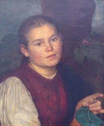 | Keywords: Hans Thoma Bildnis der Schwester Agathe.jpg Artwork Creator Hans Thoma Die damals 15-jährige Schwester des Künstlers 1863 oil canvas cm 55 46 Alte Nationalgalerie http //www bildindex de/obj02531975 html Bildarchiv Foto Marburg Bildindex der Kunst und Architektur object history 1953 Freundschaftsgeschenk der Volksrepublik Polen an die DDR vor 1945 nach Schlesien ausgelagerter Nachlaß des Künstlers à berweisung des Ministeriums für Kultur an die nationalgalreie 1954 Schenkung der Erben des Künstlers 1993 credit line Signatur HTh/ 1863 Anbringungsort rechts Mitte Widmung Signatur auf der Rückseite Dieses Bildnis gehört meiner Schwester Agathe Thoma/ gemalt in Bernau Hans Thoma accession number A III 379 unknown http //www bildindex de/bilder/ng1908_027a jpg Foto-Marburg-image PD-old-auto 1924 DEFAULTSORT 1863 Portraits by Hans Thoma Portrait paintings in the Alte Nationalgalerie 1863 paintings Portrait paintings of women Knitting in art |
