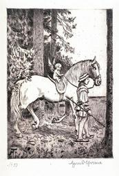 | Keywords: Hans Thoma - Ein Engel auf dem Pferd eines Landknechts.jpg Artwork Creator Hans Thoma de Ein Engel auf dem Pferd eines Landknechts 1880 Etching cm 16 6 11 8 Fine Arts Museums of San Francisco Not on display http //art famsf org/hans-thoma/angel-warriors-horse-led-warrior-19633034209 Fine Arts Museums of San Francisco object history credit line Achenbach Foundation for Graphic Arts signed with monogram HTh and dated 1880 lower left at the bottom outside the pressure with cursive signature and left with No 53 accession number 1963 30 34209 56156~16313 PD-old-auto-1923 1924 Etchings by Hans Thoma Collections of the Fine Arts Museums of San Francisco Ž |