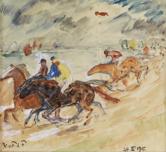 | Keywords: Hans von Faber du Faur Pferderennen 1915.jpg  Pferderennen am Strand' Gouache auf Karton 20 5 x 22 5 cm datiert 24 IX 1915 http //www hampel-auctions com/ hampel-auctions com 1915-09-24 Creator Hans von Faber du Faur PD-old-auto 1940 Images from Hampel Auctions Hans von Faber du Faur Paintings of horse racing 1915 paintings People at the beach in art |
