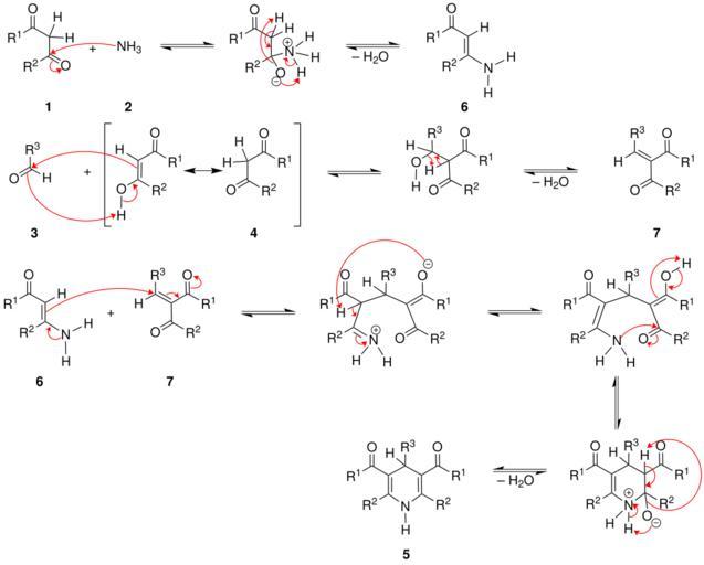 Hantzsch Dihydropyridin Reaktion v2 Mechanismus.svg (632x508)