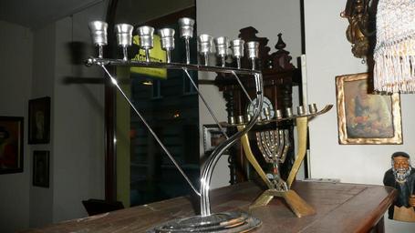 Keywords: Hanukkah Menorah 6.JPG en Hanukkah Menorah in the Anatewka restaurant in Lodz Poland own Brücke-Osteuropa 2010-06-23 Hanukiah