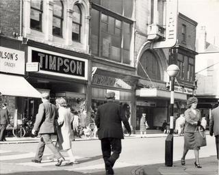 | Keywords: hartlepool west hartlepool westhartlepool historic town historictown town old lynn street lynnstreet retail shopping empire theatre empiretheatre cinema picture house picturehouse shops people buildings outdoor Photograph of Lynn Street taken by John Boagey, 1963. The photograph shows various shops on Lynn Street between Musgrave Street and Freeman Street including Nicholson's, Timpsons, William Blackburn & Co. Dunn & Co. hat makers and the Empire theatre and picture house. Lynn Street was one of the main retail areas of Hartlepool and although the road still exists, most of the buildings were dismantled around 1968 following the building of the Middleton Grange Shopping Centre Photograph of Lynn Street taken by John Boagey, 1963. The photograph shows various shops on Lynn Street between Musgrave Street and Freeman Street including Nicholson's, Timpsons, William Blackburn & Co. Dunn & Co. hat makers and the Empire theatre and picture house. Lynn Street was one of the main retail areas of Hartlepool and although the road still exists, most of the buildings were dismantled around 1968 following the building of the Middleton Grange Shopping Centre |
