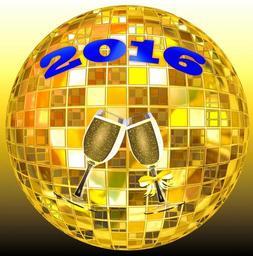 | Keywords: happy new year 2016 celebration champagne glasses drink new year party new years eve party gold golden symbol december january decorative traditional disco ball globe orb design blue number date calendar night day beginning good fortune luck kiss toast festive decoration winter ornament tradition culture |