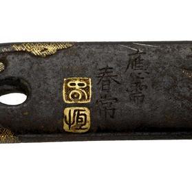 | Keywords: Haratsune - Kozuka with Ox and Ivy - Walters 51648 - Mark A.jpg At the right of the kozuka is an ox facing away from the viewer It is at a small stream and has a led rope attached On the right is ivy On the back bundles of rice straw are shown near a stream century 19 iron gold cm 10 1 accession number 51 648 30624 Henry Walters Baltimore date and mode of acquisition unknown Walters Art Museum Henry Walters Acquired by Henry Walters Seal unread; Signature ôjû Harutsune; Translation By special request Harutsune place of origin Japan Walters Art Museum license Kozuka in the Walters Art Museum Media contributed by the Walters Art Museum needs category review Haratsune |
