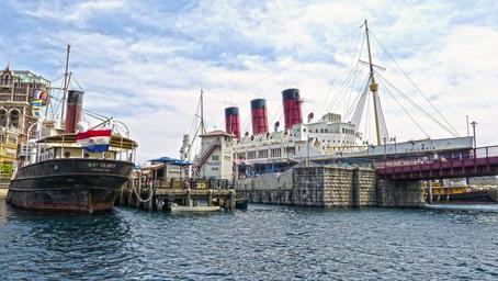 Keywords: harbor ship water sea harbour view boat blue sky cruise ship passengers tide ocean disney sea stones landscape scenery america bridge flag dock booth
