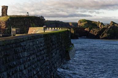 Keywords: harbor wall coastline sea harbor wall coast architecture town seaside water waves sunlight clouds seascape coastal scotland dunbar east coast east lothian sky nature ocean scenic