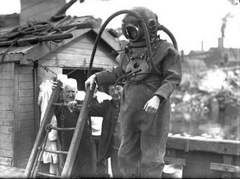 | Keywords: archives state records nsw staterecordsnsw newsouthwales blackandwhite diver hardhat maritime service board maritimeserviceboard punt people monochrome black and white Hard hat diver preparing to enter water from the Maritime Services Board diver's punt Dated: No date Digital ID: 9856_a017_A017000043 Rights: www.records.nsw.gov.au/about-us/rights-and-permissions We'd love to hear from you if you use our photos. Many other photos in our collection are available to view and browse on our website using Photo Investigator. Hard hat diver preparing to enter water from the Maritime Services Board diver's punt Dated: No date Digital ID: 9856_a017_A017000043 Rights: www.records.nsw.gov.au/about-us/rights-and-permissions We'd love to hear from you if you use our photos. Many other photos in our collection are available to view and browse on our website using Photo Investigator. |