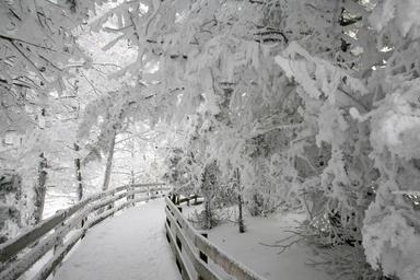 Keywords: hard rime ice winter trees fence path frozen frost weather branches nature outdoors covered wood freezing