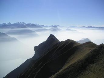 Keywords: harder mountains bernese oberland switzerland summer hiking alpine walk deep mist
