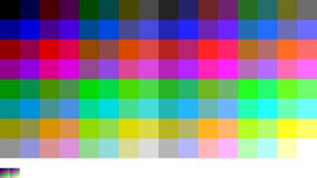 | Keywords: Hardware palette of SAM Coupé.png Produced with the following ImageMagick command some manual resizing convert -size 16x8 xc \ -channel B -fx ' i 1 <<1 j 1 <<2 i 8 >>3 /7' \ -channel R -fx ' i 2 j 2 <<1 i 8 >>3 /7' \ -channel G -fx ' i 4 >>1 j 4 i 8 >>3 /7' -scale 1600 png8 SAM Coupé colourmap png en The full SAM Coupé hardware colour palette 2014-04-13 19 15 27 own StuartBrady cc-zero Uploaded with UploadWizard SAM Coupé Test patterns Screen colors Color palettes | ||||