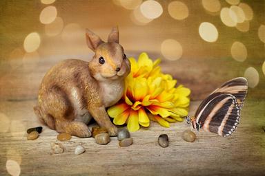 Keywords: hare easter bunny dekohase flower blossom bloom fabric flower yellow butterfly stones deco decoration decorative bokeh spring easter