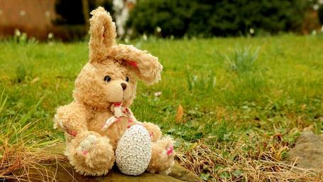 Keywords: hare soft toy fabric stuffed animal teddy bear cute cuddly easter easter egg grass green nature soft fur easter bunny festival celebration holidays