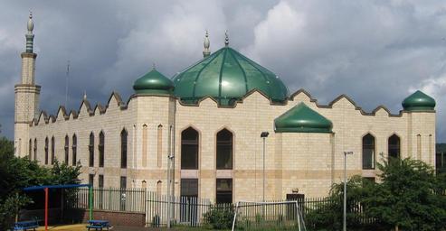 Keywords: HarehillsMosqueDome.jpg en Mosque Markazi Jamia Masjid Bilal Harehills Place Leeds LS8 5GL viewed across the playground of Harehills Primary School Own Chemical Engineer 2008-08-04 Grid Ref 432 1 435 5 Harehills Mosques in Leeds