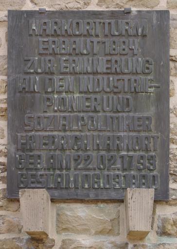 | Keywords: Harkortturm 002.JPG Harkortturm in Wetter an der Ruhr own Janericloebe 2010-07 other fields 1 inscription inscription HARKORTTURM<br/> ERBAUT 1884<br/> ZUR ERINNERUNG<br/> AN DEN INDUSTRIE-<br/> PIONIER UND<br/> SOZIALPOLITIKER<br/>FRIEDRICH HARKORT<br/>GEB AM 22 02 1793<br/>GEST AM 06 03 1880 de Plaques in Wetter Ruhr Harkortturm |