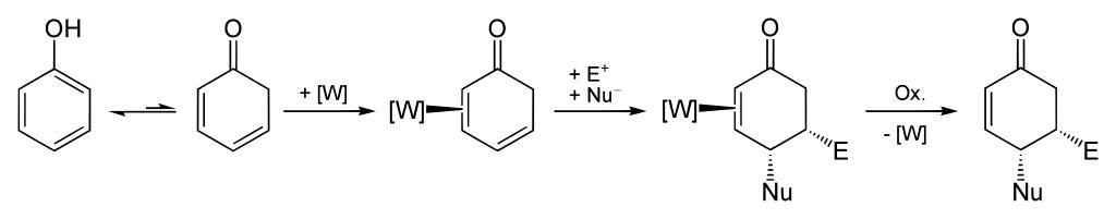 Keywords: Harman reaction.svg en stepwise addition of an electrophile E<sup>+</sup> and a nucleophile Nu<sup> ˆ’</sup> to TpW NO PMe<sub>3</sub> 5 6-η<sup>2</sup>-2H-phenol Image TpW NO PMe3 svg Tp hydriodotris pyrazolyl borate Own Yikrazuul 6 11 08 Tungsten complexes |