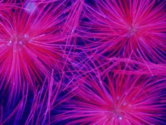 | Keywords: usgs science algal bacteria water native americans nativeamericans native freshwater health environment publication abstract texture Harmful Water Organisms — Here's a photo taken of gloeotrichia echinulata under an epifluorescent microscope which emits ultraviolet light. Using ultraviolet light, the filaments glow red from chlorophyll, while other pigments give various hues of purple, which may be a hint about the health of the cells. There may be organisms in lakes, reservoirs, rivers and streams, that produce natural toxins. When a harmful algal bloom is present with these toxins, there is a risk from drinking the water or consuming fish and shellfish. This organism is just one example. The Native American and Alaska Native communities that are dependent on subsistence fishing have an increased risk of exposure to these cyanotoxins. It is important to recognize the presence of an algal bloom in a waterbody and to distinguish a potentially toxic harmful algal bloom from a non-toxic bloom. Scientists at USGS created a guide which provides field images that show cyanobacteria blooms, some of which can be toxin producers, as well as other non-toxic algae blooms and floating plants that might be confused with algae. The guide also provides microscopic images of the common cyanobacteria that are known to produce toxins, as well as images of algae that form blooms but do not produce toxins. You can see the full report at on.doi.gov/HarmfulAlgalBlooms. Harmful Water Organisms — Here's a photo taken of gloeotrichia echinulata under an epifluorescent microscope which emits ultraviolet light. Using ultraviolet light, the filaments glow red from chlorophyll, while other pigments give various hues of purple, which may be a hint about the health of the cells. There may be organisms in lakes, reservoirs, rivers and streams, that produce natural toxins. When a harmful algal bloom is present with these toxins, there is a risk from drinking the water or consuming fish and shellfish. This organism is just one example. The Native American and Alaska Native communities that are dependent on subsistence fishing have an increased risk of exposure to these cyanotoxins. It is important to recognize the presence of an algal bloom in a waterbody and to distinguish a potentially toxic harmful algal bloom from a non-toxic bloom. Scientists at USGS created a guide which provides field images that show cyanobacteria blooms, some of which can be toxin producers, as well as other non-toxic algae blooms and floating plants that might be confused with algae. The guide also provides microscopic images of the common cyanobacteria that are known to produce toxins, as well as images of algae that form blooms but do not produce toxins. You can see the full report at on.doi.gov/HarmfulAlgalBlooms. |